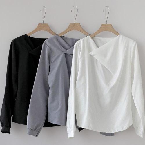 [미라클세븐]여성 사무실 의상 다트 디자인 무채색 기본핏 가을용 블라우스