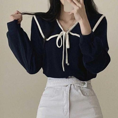 [셀러허브_여성트랜드패션]ONM 빅카라 리본 타이 벌룬소매 아이보리 블라우스