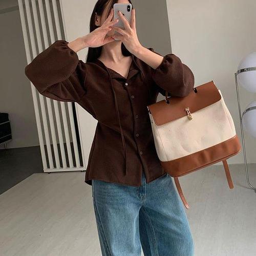 [신상오픈런]여성 슬림핏 버튼 퍼프 블라우스 가을 하객룩용
