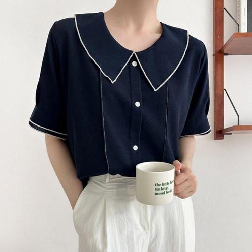 단추 캐릭터 캐쥬얼 니트 블라우스 조끼 와이셔츠 셔츠 남방 원피스:-블라우스단추