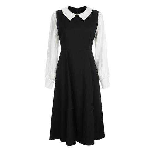 여성 카라넥 하객룩 페미닌 블라우스 레이어드 원피스 EGG-WDR-20777-블랙