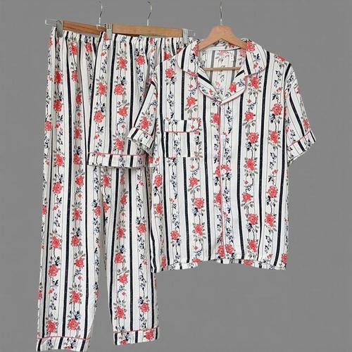 |CSD2683|여성용 스트라이프 꽃무늬 블라우스 바지 3종 세트 잠옷