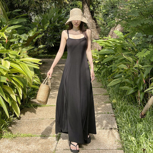 [에이치플러스몰]여자 여름 룩 나시 블랙 롱 원피스