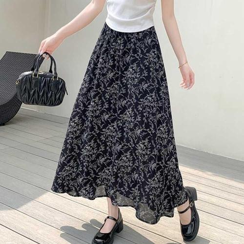 여름 블랙패턴 포인트 허리밴딩 스커트 A라인 롱치마 WF378A3