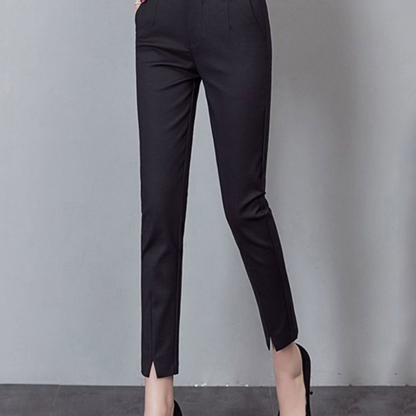 TEMU 여성용 슬림 트임 정장 바지 봄 여름 가을 데일리 스판 일자 9부 캐주얼 바지 면접 오피스룩 슬림소녀 SLIM GIRL