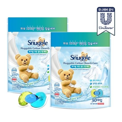 스너글 캡슐 세탁세제 허거블 코튼 클린 앤 케어 30개입 2개