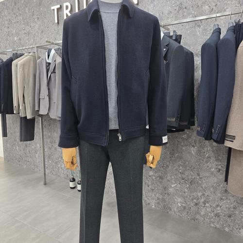 [트루젠]남자 가을겨울 투톤 네이비 컬러 울 혼방 블루종 숏 하프 기장 모직 코트_JK