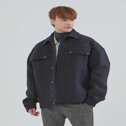 [트루젠]남자 울 혼방 짧은 기장 지퍼 블루종 숏 하프 기장 모직 코트 - 네이비_JK