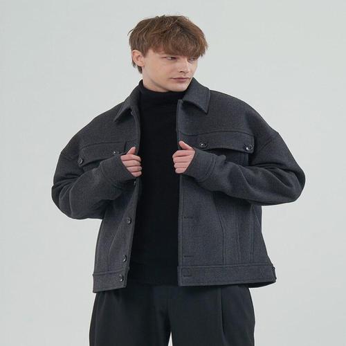 [트루젠]남성 울 50% 모직 혼방 총장 66cm 지퍼 블루종 숏 하프 기장 모직 코트_JK