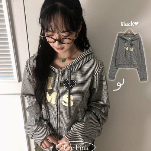 더핑크 / 블링 아이러브 레터링 단가라 투웨이 후드집업
