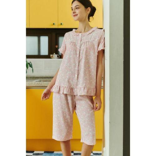 [솔브]비너스(정상) 면 80수 아사 잔꽃 나염 여성 실내복 세트 VEVA102W_VEP102W_MT_2C_C