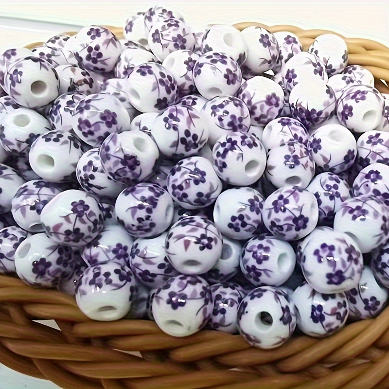 TEMU 빈티지 스타일 보라색, 파란색, 흰색 세라믹 장식 비즈 50개입 팩, 수제 주얼리, 직조 장식, 목걸이 및 팔찌 제작 재료로 적합