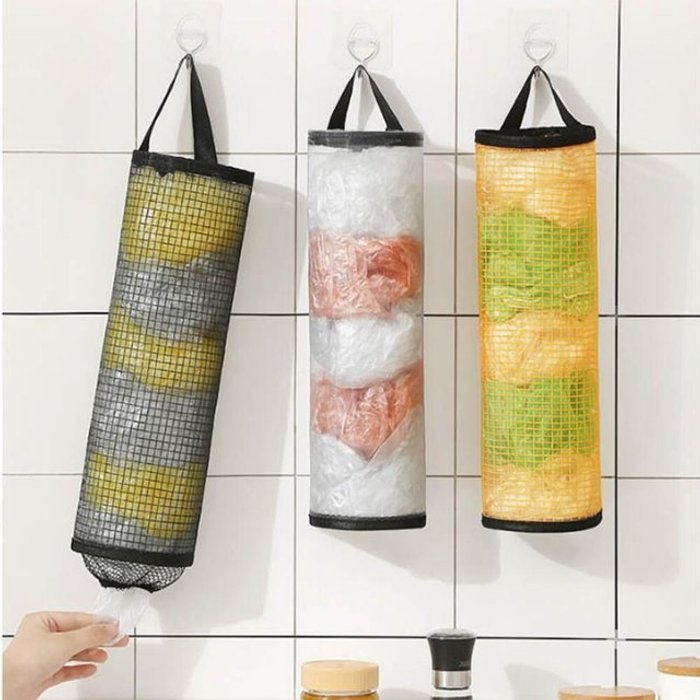 비닐봉투 정리함 벽걸이 벽부착 그물망 봉지 주방 수납 포켓