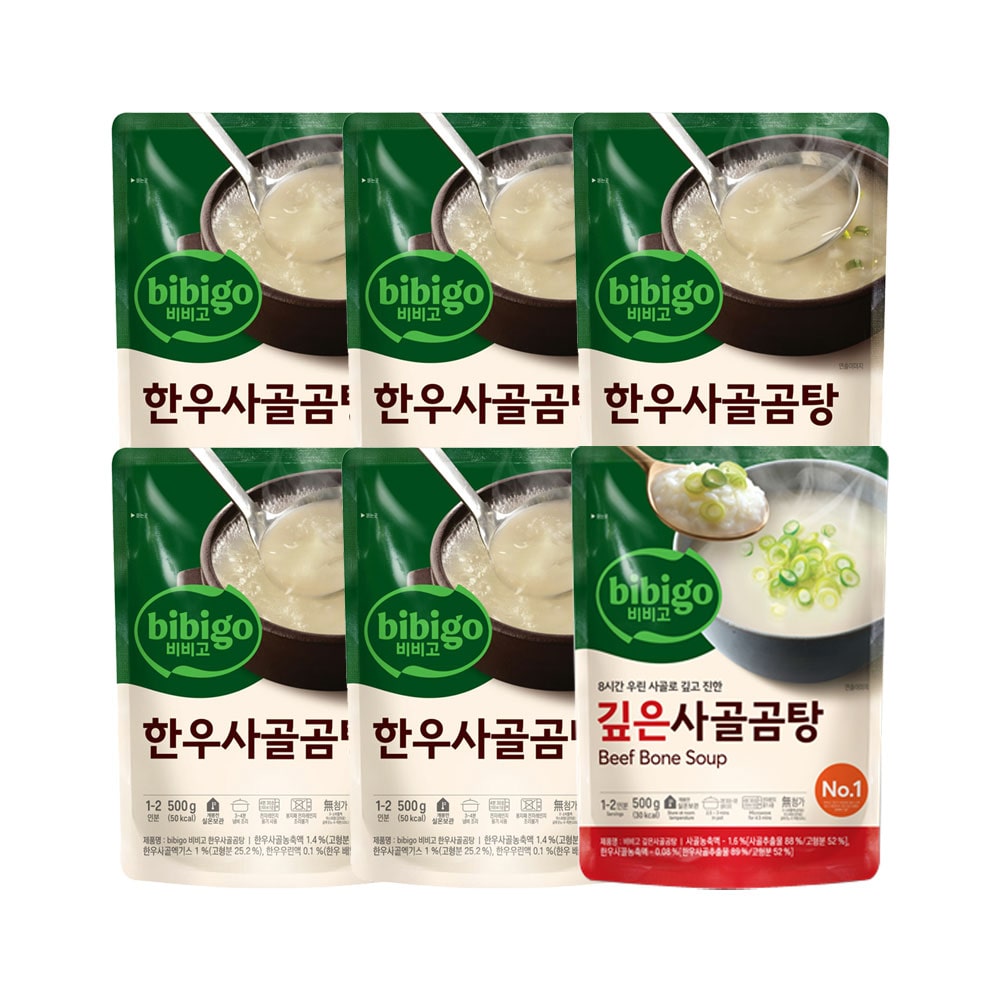 비비고 한우사골곰탕 500g x5개+깊은 사골곰탕 500g x1개