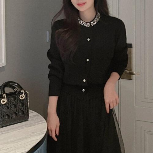[릴룸]비즈 장식 네크라인 포인트 가디건