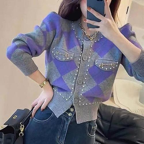 [엄지척]여성 아가일 패턴 보석 비즈 니트 가디건_19792911_667501