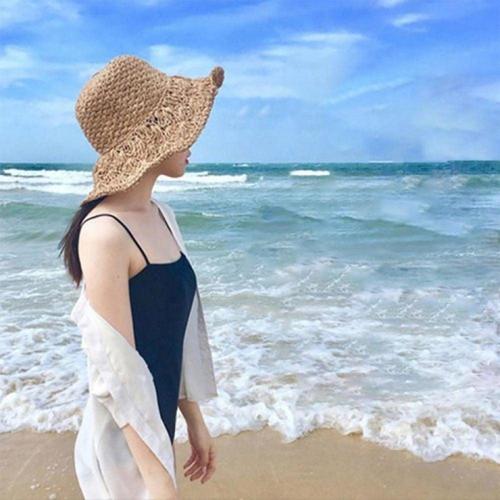 여성용 여름 비치 햇빛 차단 밀짚 버킷햇 야외 모자 WFKNZUP