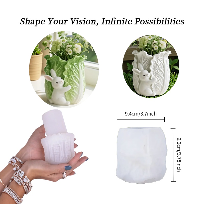 TEMU 생생한 3D 실리콘 몰드, 양배추 토끼 모양 화분, 점토 실리콘 재질, 소박한 정원 장식용으로 디자인됨. 양배추와 토끼 사이의 자연스러운 조화가 섬세하게 표현됩니다.|화분
