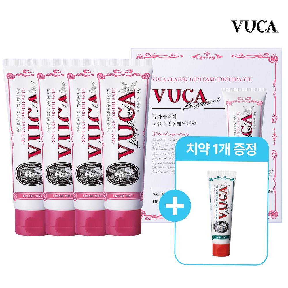 클래식 고불소 잇몸케어 비건치약 프레쉬민트향 110g 4개입+구취케어 1개 증정