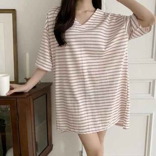 [신상오픈런]|KMO52D6|홈웨어 단가라 박스롱티 빅사이즈 브이넥 반팔원피스_20529393_597559