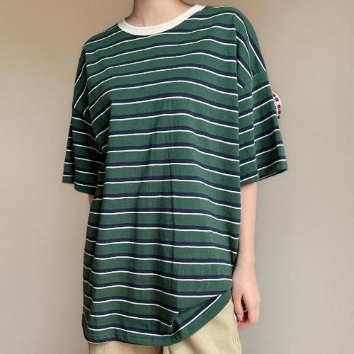반팔 스트라이프 티셔츠 크롭 여성티셔츠 빅 박스 (3a4bQ)