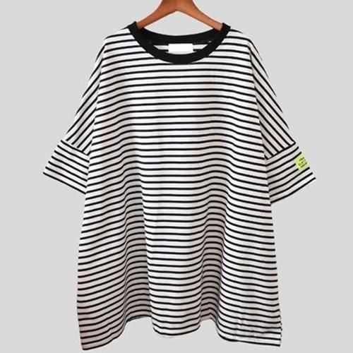 [에이치플러스몰]드레스 스트라이프 빅사이즈 루즈 줄무늬 무지 반팔