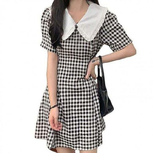 [모노무드]모노무드 xmfl-2 여성 여름 원피스 페미닌 체크 치마 반팔 빅카라
