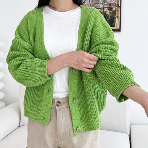 [다잇템]여성 스웨터 롱슬리브 롱 빅사이즈 V넥 가디건