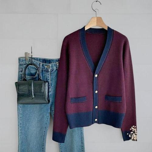 [다잇템_패션]여성 빅사이즈 롱 콘트라스트 롱슬리브 가디건