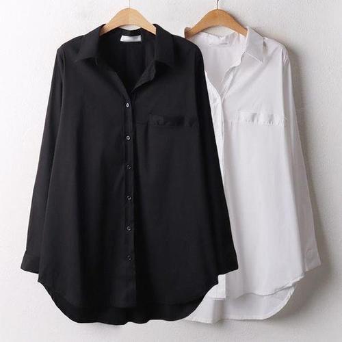 [셀러허브_여성트랜드패션]여성 무지 셔츠 루즈핏 국내생산 남방 데일리 롱 빅사이즈