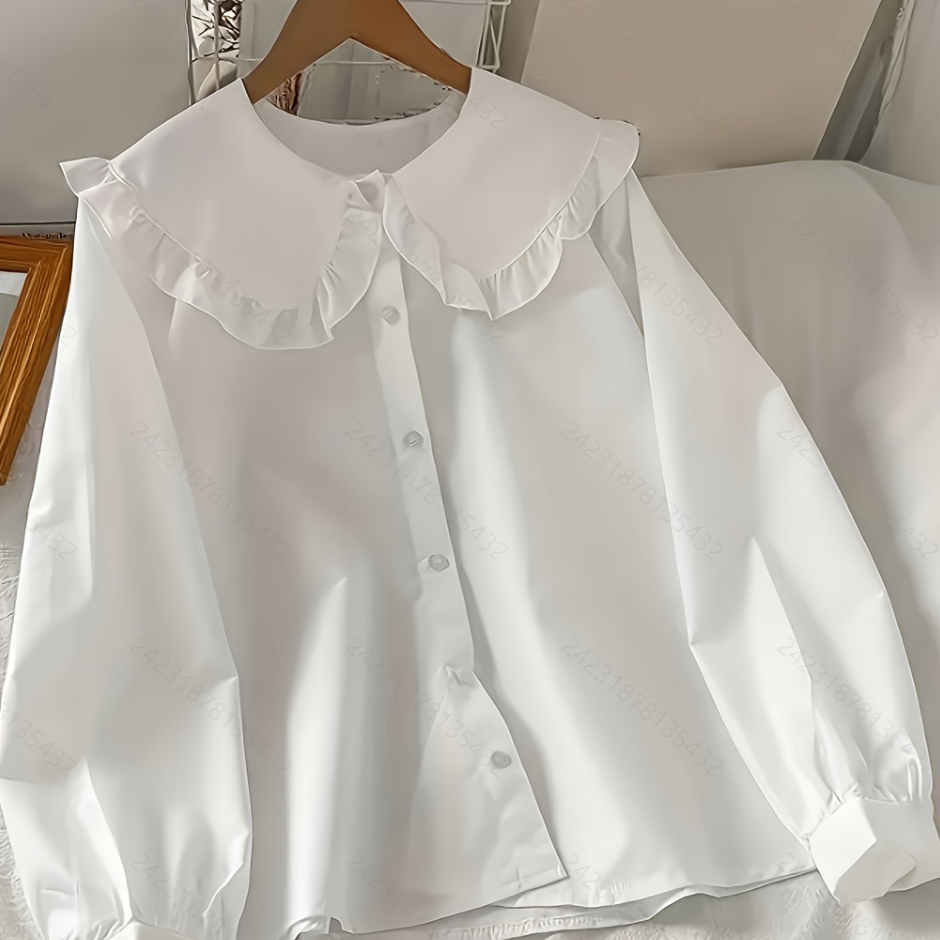 TEMU 2025 봄/가을 신상 한국식 우아하고 매력적인 긴팔 피터팬 칼라 셔츠 - 귀여운 플리츠 블라우스