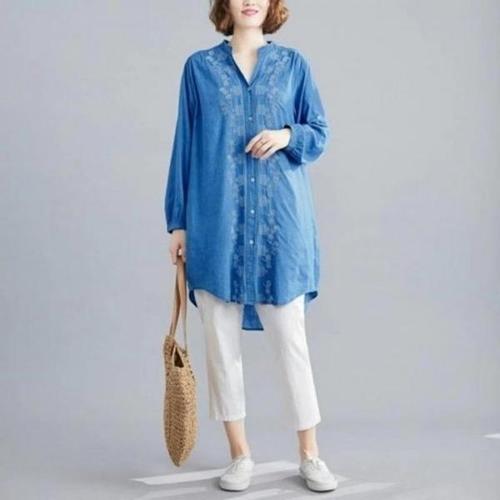 [신상오픈런]여성용 오버사이즈 포켓 청 셔츠 코튼 빅사이즈 블라우스