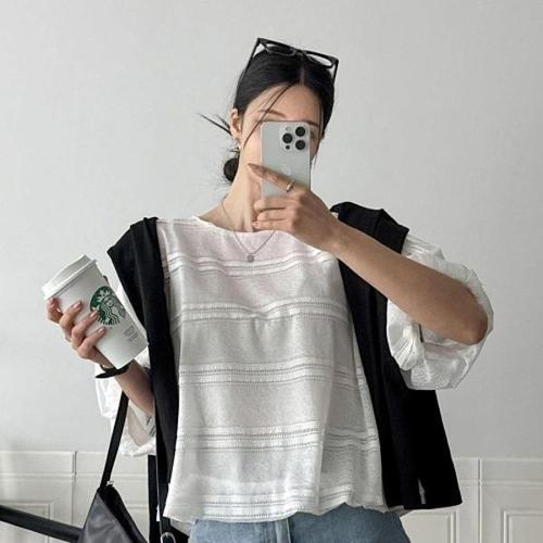 [다잇템][다잇템] 여자 비침 빅사이즈 펀칭 잔주름 줄지 블라우스_20680729_588872