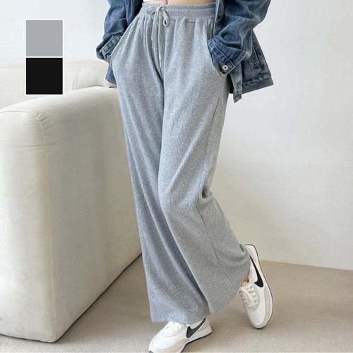 [셀럽하우스]플리츠 GFNP9901 여성 빅사이즈 골지 와이드 밴딩 팬츠