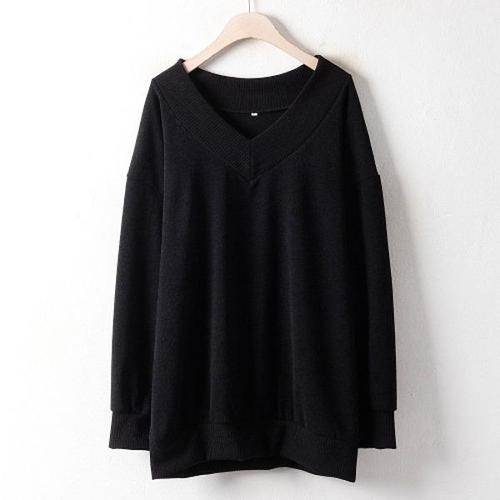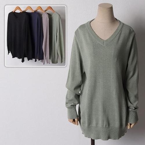 [엄지척]빅사이즈 브이넥 니트 루즈핏 티 DWW3125 긴팔_19678535_667501
