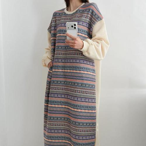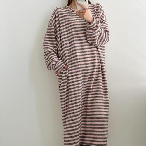 위시엘 빅사이즈 부드러운 스트라이프 니트 롱 원피스