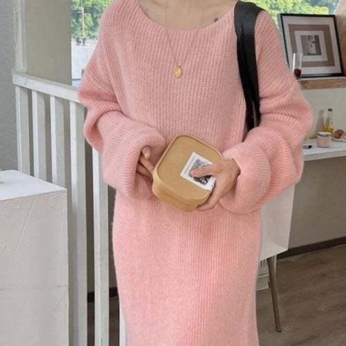 [셀럽하우스]루즈핏 NJID2102 입술넥 데일리 롱원피스 니트 클래식 빅사이즈