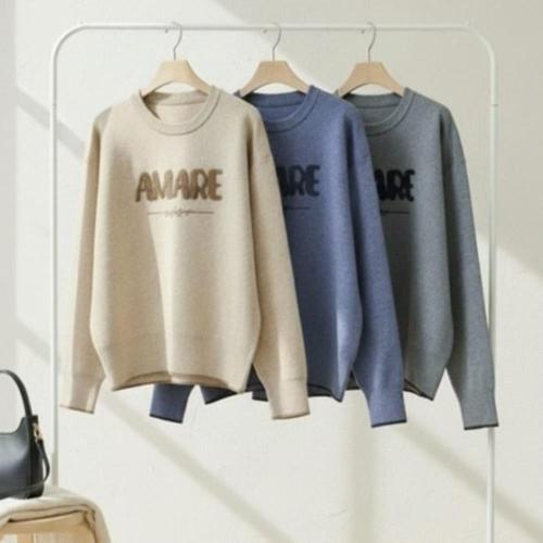 [다잇템]여자 롱슬리브 빅사이즈 필기체 클래식 니트
