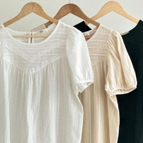 [브이와이][VY] 여자 빅사이즈 후레아 벌룬 라운드 잔주름 레이스 블라우스_14253171_588847