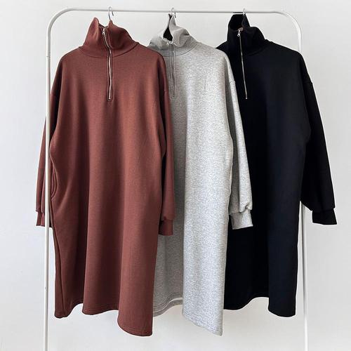 [옷자락] 여성 하이넥 기모 롱원피스 빅사이즈 투웨이 반집업