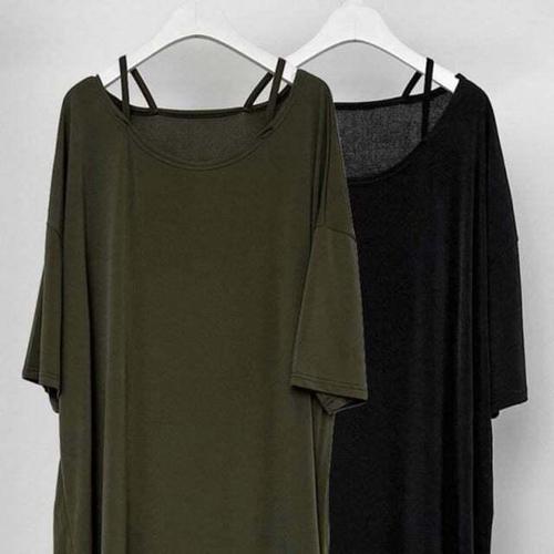 빅사이즈 롱롱 프리 나시 DWW0013R 촉감 롱 민소매 티