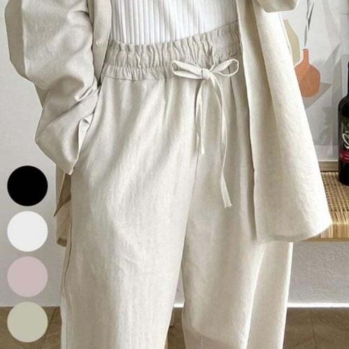 여친 팬츠 캐주얼 가을 빈티지 린넨 솔리드 밴딩 허리 스트링 빅사이즈 OP3