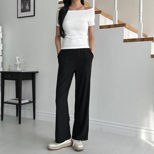 와이드 배기 빅사이즈 긴바지 일자 면 코디 밴딩 스판 WFKXXQL