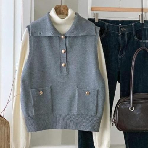 [다잇템][다잇템] 여성 스웨터 폴라넥 빅사이즈 금버튼 베이직 베스트_23705056_588872
