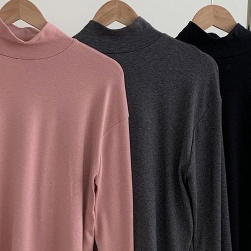 허블리 여성 소프트 기모 반목티 긴팔 티셔츠