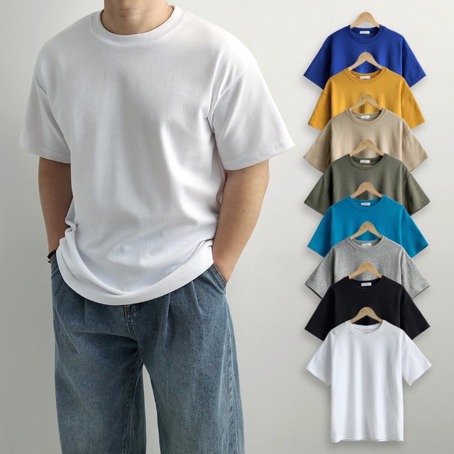 M~4XL 빅사이즈 남자 오버핏 반팔티 무지 국내생산 도톰한 여름 티셔츠 남성 반팔 흰색 면티 무지티 흰티