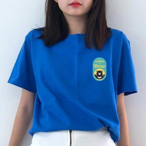 [험블스튜디오][험블스튜디오] 오버핏 빅사이즈 반달곰 심플 로고 라운드넥 면 반팔티 블루 (3674034)