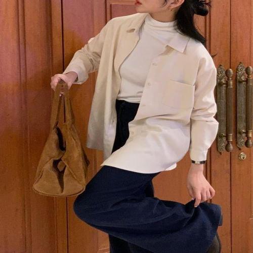 [옷자락]여자 겨울 속기모 반오픈 셔츠 골덴 빅사이즈 롱원피스