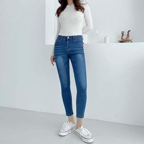 [셀럽하우스]이지핏 RKMY3769 크롭드 데님 팬츠 스판 스키니진 빅사이즈
