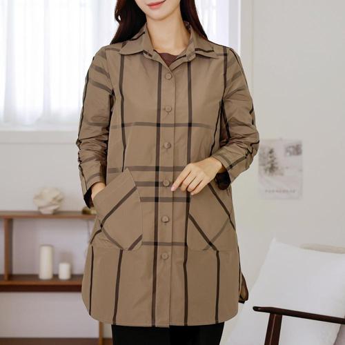 드리다 가을 카라 체크 ?겹 빅사이즈 사파리 메모리 자켓 40-50대 미시 중년여성 엄마옷 하객 모임 출근